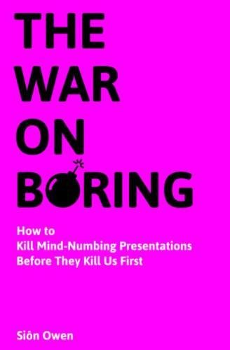 2 of 2 people found the following review helpful. Painful presentations By Bruce Carlson As I read Sion Owen's book "The War on Boring" I found the opening especially painful and challenging. Painful and challenging because I relived every dreadful presentation I have ever had to sit through in my many years. Some of which were my own. In the books opening Sion has done a masterful job of hitting the many flaws people have incorporated into their presentations. He rightfully acknowledges the sorry state of presentations and the opportunity one was to shine as a premier presenter. After Sion's honest assessment of most presentation skills demonstrated today, his book continues in a simple to advanced process of showing one how to create and deliver a presentation that will elevate one not only to a outstanding presenter, but give that person a huge leg up on inviting people into your product and/or service. This is a must read for anyone who does presentations. Sion has provided clear and concise information to build a "knock it out of the park" presentation. The value you will receive far out weights the cost of the book. The only problem I can see with the book is if everyone purchased one, the bar on presentations would be raised to a level that would require Sion to write another book. And that would be a good thing. Do not wait, get the book now, and save your audience from unnecessary painful presentations.
